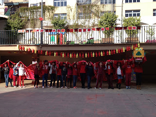 The school offers a once-a-week after school Mandarin class, there is one adopted Chinese student, and a few students from Chinese families, but these are a very small minority. In Barcelona there is a considerable and growing population of mainland Chinese immigrants, but they report that the New Year is not really celebrated here. Chinese families have large meals together, but that about sums it up.